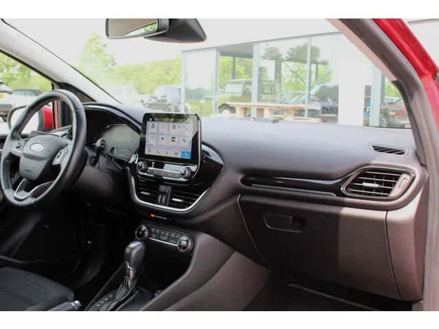Zeer mooie en complete Ford Fiesta Titanium met de zuinige en sterke 1.0 EcoBoost motor met AUTOMAAT en slechts 56139km! Deze Fiesta is o.a. voorzien van navigatie, bluetooth, Apple CarPlay en Android Auto, B&O audio (Bang and Olufsen), PDC voor en achter met achteruitrijcamera, climate control, cruise control, 16" lichtmetalen velgen, regen- en lichtsensor, verwarmde voorruit, elektrische ramen en spiegels, privacy glass, enz. Volledig dealeronderhouden auto met 2 sleutels, gestempelde boekjes en NAP! De prijs voor deze compact automaat inclusief onderhoudsbeurt volgens schema, nieuwe APK en 12 maanden garantie t.w.v. € 995,- is € 12.745,-.Meer informatie