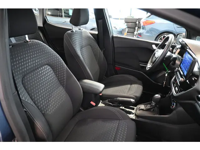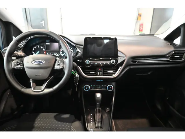 Deze goed onderhouden Ford Fiesta heeft nog maar weinig op de teller staan. Een jonkie voor een oude prijs! Hij heeft een benzinemotor en een automatische transmissie. In deze sportstoelen voel je je één met je auto. Ook 15 inch lichtmetalen velgen, led-koplampen, in delen neerklapbare achterbank en LED-achterlichten zijn aan boord.Het navigatiesysteem loodst u snel naar uw reisdoel. U verwacht natuurlijk dual zone automatische airconditioning in deze auto, en die is er dan ook. De parkeersensoren registreren alles. Ook dat ene paaltje dat net buiten uw gezichtsveld valt. Natuurlijk is een complete auto als deze ook voorzien van sensoren die de omgeving in de gaten houden. Deze Ford heeft niet alleen een automatisch inschakelbare verlichting aan boord, maar ook een regensensor. Een constante snelheid is goed voor de ontspanning onderweg, en de cruise control zorgt ervoor. Ook automatisch dimmende binnenspiegel, centrale deurvergrendeling met afstandsbediening, boordcomputer, verstelbaar stuur en lederen versnellingspook horen tot de voorzieningen op deze auto.