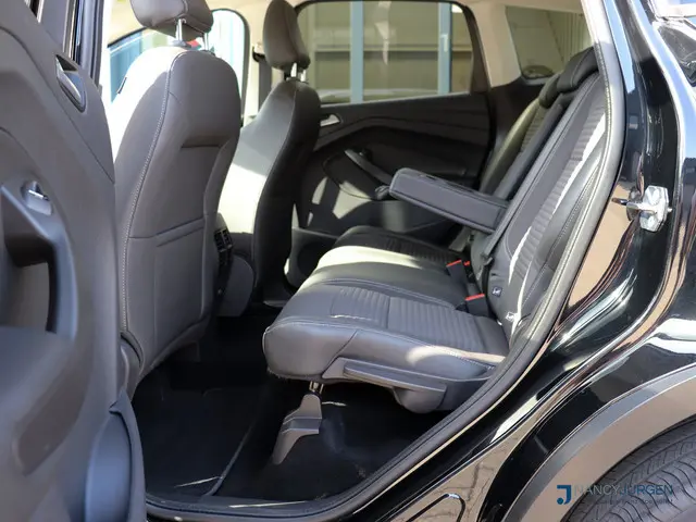 In het moderne verkeer hebt u achter het stuur van de Ford Kuga altijd de controle. Deze auto komt uit 2017. Hij heeft een benzinemotor en een handgeschakelde zesversnellingsbak. Voor het pittige uiterlijk én goed gesteund zitten zorgen de sportstoelen. Dankzij het elektrisch bediende glazen panoramadak lijkt het of u altijd met open dak rijdt. Verder is de Ford uitgerust met: 17 inch lichtmetalen velgen, halflederen bekleding, LED-dagrijverlichting, in delen neerklapbare achterbank, verstelbare lendensteunen en snelheidsafhankelijke stuurbekrachtiging.De achteruitrijcamera maakt inparkeren gemakkelijker dan ooit. Wat wilt u onderweg horen? Er is volop keus, dankzij bluetooth. Het full map navigatiesysteem is met het audiosysteem gecombineerd. De electronic climate control zorgt voor een behaaglijk klimaat in de auto. Het drukke verkeer eist onderweg al uw aandacht op. Daarom is het goed dat deze Ford is voorzien van diverse systemen die u assisteren tijdens de rit. Een automatisch inschakelbare verlichting neemt het waar als het donker wordt of gaat schemeren, en schakelt dan automatisch de verlichting in. Op dezelfde manier "ziet" de regensensor de eerste spatjes regen en schakelt dan de ruitenwissers in, en als het harder gaat regenen zet hij de ruitenwissers ook in een snellere stand. Er is ook cruise control aan boord, om met een constant tempo ontspannen en zuinig te rijden. Met dashboard met spraakbediening, keyless entry, automatisch dimmende binnenspiegel, lederen stuur, bagage afdekhoes en boordcomputer is deze auto helemaal compleet.