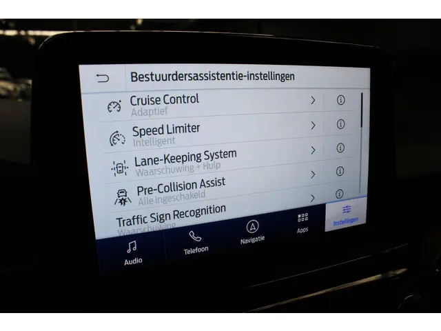 Rij- en route-info wordt perfect in beeld gebracht door het digitale dashboard. Het inventieve 360 graden camerasysteem op deze auto heeft de functie om u assistentie te bieden in nauwe ruimtes en straten, waar het achteruit rijden vaak een uitdaging is. Adaptive cruise control houdt de ingestelde snelheid vast en houdt automatisch afstand tot uw voorligger. Slimme spraakbesturing herkent gesproken opdrachten en voert ze uit. Via uw smartphone en Connected Services checkt u eenvoudig de belangrijke functies van de auto, overal en altijd. U bent in deze Ford ook voorzien van premium audiosysteem, full map navigatiesysteem, WIFI-hotspot, achteropkomend verkeer waarschuwing, automatische airconditioning en audiobediening op het stuur.