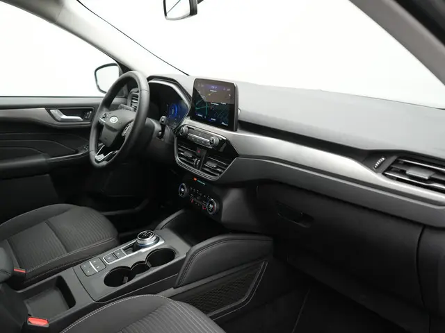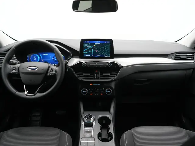 Overzicht, informatie en functionaliteit: dat biedt het digitale dashboard. Soepel inparkeren gaat gemakkelijker dan u verwacht dankzij de achteruitrijcamera. Deze Ford Kuga is 'connected'. Belangrijke functies worden permanent gemeten en zijn uit te lezen via een speciale app, ook op afstand. U bedient het full map navigatiesysteem en het audiosysteem met DAB-radio via knoppen op het stuur, of zelfs met uw stem. Zo kunt u steeds uw aandacht gericht houden op de weg. Radarsensoren aan de achterkant van de auto zorgen voor een achteropkomend verkeer waarschuwing als de afstand tot het verkeer achter te klein wordt. Deze Ford is voorzien van WIFI-hotspot, automatische airconditioning, regensensor, cruise control, keyless entry en automatisch dimmende binnenspiegel.
