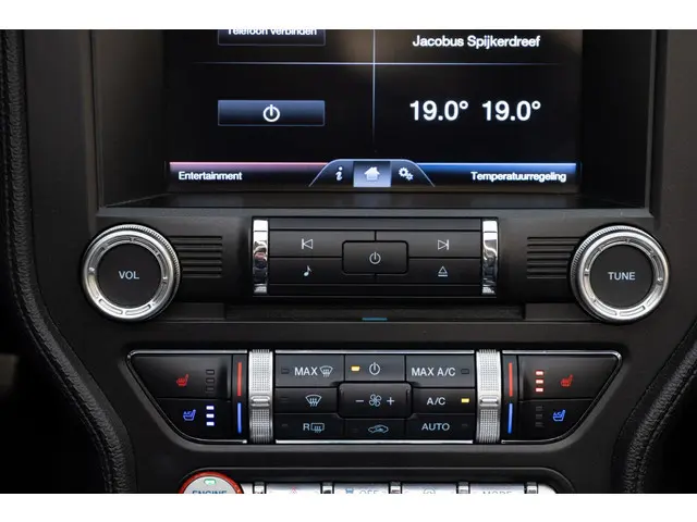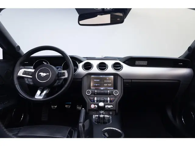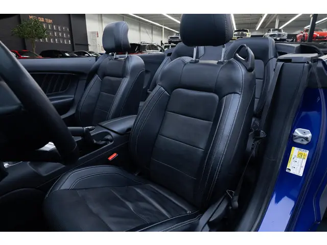 Dankzij hoogwaardige techniek en verschillende veiligheidssystemen, biedt deze Ford Mustang Convertible je optimale veiligheid en comfort tijdens iedere rit. De aandrijving komt voor rekening van een benzinemotor en een handgeschakelde zesversnellingsbak. Van de diverse pluspunten is ook het lederen interieur het noemen waard. 's Winters op pad gaan kan een behoorlijke uitdaging zijn. Daarom is deze Ford Mustang Convertible voorzien van weldadige verwarmbare voorstoelen. Een handige en comfortabele voorziening van deze auto is het elektrisch bedienbare cabriodak. De gasontladingslampen van de xenonverlichting zorgen voor een krachtige en heldere lichtbundel. Ook 19 inch lichtmetalen velgen, LED-achterlichten en verstelbare lendensteunen zijn aan boord.Alles vrij achter? De achteruitrijcamera laat het meteen zien. In deze auto word je elke rit opnieuw bijgestaan door een gebruiksvriendelijk full map navigatiesysteem, terwijl je luistert naar het glasheldere geluid van het audio-installatiesysteem met DAB-radio. Met automatische airconditioning hoef jij alleen de gewenste temperatuur in te stellen. Het systeem doet de rest. De juiste ruitenwisserfrequentie gaat automatisch van motregen tot noodweer, de regensensor reageert direct. Er is ook cruise control aan boord, om met een constant tempo ontspannen en zuinig te rijden. De uitrusting van deze auto is met dashboard met spraakbediening, keyless entry en automatisch dimmende binnenspiegel behoorlijk compleet.