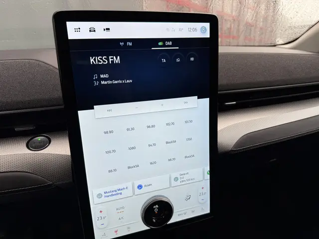 Met de Ford Mustang Mach-E kiest u voor het rijplezier van de toekomst. De volledig elektrische aandrijflijn zorgt voor krachtige prestaties en een sensationeel acceleratievermogen. Schoon, stil en fiscaal vriendelijk: met de elektromotor is het zuinig zoeven! De krachtige motor geeft deze Ford uitstekende prestaties. Om het af te maken is deze auto voorzien van een lederen interieur. Zit u goed? De stoelen zijn eenvoudig instelbaar dankzij de elektrische bediening met geheugen. De elektrische achterklep opent met een druk op de knop, zodat u gemakkelijk toegang heeft tot de bagageruimte. Het glazen panoramadak biedt u een breed zicht op de omgeving. Bij de uitrusting van deze Ford horen onder meer 18 inch lichtmetalen velgen, LED koplampen, warmtewerend glas, in delen neerklapbare achterbank en LED-achterlichten.Met het digitale dashboard van deze auto is de aanpassing van uw cockpitinterface een fluitje van een cent. Elk van de vier camera's op deze auto draagt bij aan het creëren van een onbelemmerd uitzicht van 360 graden rondom de auto. Adaptive cruise control is veilig en comfortabel. De snelheidsregelaar houdt automatisch afstand tot het voertuig dat voor u rijdt. De meest gebruikte voertuigfuncties laten zich met behulp van uw stem bedienen. De jeugd is niet los te maken van hun smartphone, en dat zie je ook aan deze jonge auto. Via een speciale app staat u overal en altijd in contact met uw vierwieler. Superhandig! Natuurlijk behoren premium audiosysteem, full map navigatiesysteem, automatische airconditioning, audiobediening op het stuurwiel, draadloos opladen en DAB ontvangst ook tot de uitrusting van deze complete auto.