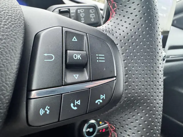 Wil je comfortabel, zuinig en ruim? De bijzonder complete Puma Ecoboost Hybrid in ST-Line X uitvoering heeft het allemaal. Ga zitten en geniet!Deze zeer mooie en geavanceerde Ford Puma is van vele opties voorzien, waaronder: navigatie, adaptieve cruise control, airconditioning (automatisch), achteruitrijcamera, LED matrix koplampen, LED achterlichten, volledig LCD instrumentenpaneel, parkeersensoren voor en achter, automatisch inparkeren, SYNC + voice control, draadloos telefoon opladen, Bang & Olufsen Premium Audio, dode hoek detectie, 17" two-tone lichtmetalen velgen, rode stiksels in de bekleding en stuurwiel, unieke ST-Line accenten, DAB+ radio, lederen/stof bekleding, zwarte hemelbekleding, Apple Carplay/Android Auto, enz. enz.