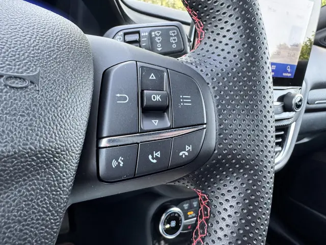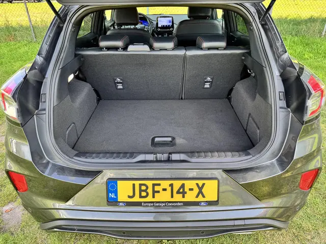Wil je comfortabel, zuinig en ruim? De bijzonder complete Puma Ecoboost Hybrid in ST-Line X uitvoering heeft het allemaal. Ga zitten en geniet!Deze zeer mooie en geavanceerde Ford Puma is van vele opties voorzien, waaronder: navigatie, adaptieve cruise control, airconditioning (automatisch), achteruitrijcamera, LED koplampen, LED achterlichten, volledig LCD instrumentenpaneel, parkeersensoren voor en achter, automatisch inparkeren, SYNC + voice control, draadloos telefoon opladen, Bang & Olufsen Premium Audio, dode hoek detectie, 17" two-tone lichtmetalen velgen, rode stiksels in de bekleding en stuurwiel, unieke ST-Line accenten, DAB+ radio, lederen/stof bekleding, zwarte hemelbekleding, Apple Carplay/Android Auto, enz. enz.