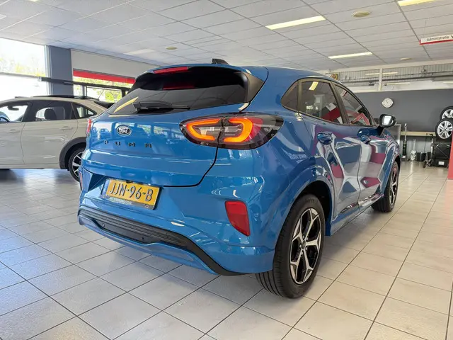 Deze Ford Puma ST-Line is een ideale keuze voor wie zoekt naar een complete SUV-ervaring in een compacte carrosserie. Met zijn mild-hybride technologie profiteer je van extra zuinigheid en soepel rijgedrag zonder in te leveren op prestaties. De ruime uitrusting met navigatie, smartphone-integratie en parkeergemak maakt elke rit prettig — van dagelijkse ritten tot weekenduitjes.