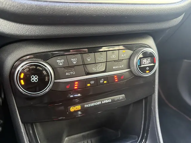 Zoals u mag verwachten van deze Ford Puma is hij uitgerust met een reeks aan actieve veiligheidssystemen. Tijdens de rit hebt u altijd een bijrijder, want de verkeersbord-detectie leest de borden langs de weg en projecteert ze voor u op het instrumentarium. Een camera houdt de juiste koers binnen de rijstrook in de gaten en het Lane-keeping systeem corrigeert bij afwijkingen. Kop-staartbotsingen vormen een belangrijk deel van de meest voorkomende aanrijdingen. De forward collision warning van deze auto voorkomt zulke botsingen geheel of reduceert de ernst van de schade aanzienlijk. In deze Ford vinden we verder een hill hold functie, brake assist en bandenspanningcontrolesysteem.