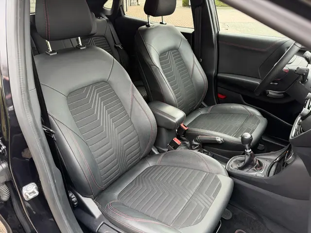 Bij de bouw van de Ford Puma wordt niets aan het toeval overgelaten. Vandaar dat hier een auto staat die in optimale conditie verkeert. In deze auto vindt u een benzinemotor en een handgeschakelde zesversnellingsbak. 's Winters komen de verwarmbare voorstoelen heerlijk van pas. Laat die bochten maar komen! In de sportstoelen zitten u en uw bijrijder altijd goed! Een verwarmd stuurwiel overbodige luxe? Wacht maar tot het kouder wordt! Verder is de Ford uitgerust met: 18 inch lichtmetalen velgen, LED koplampen, sportonderstel, halflederen bekleding, extra getint glas en in delen neerklapbare achterbank.Met het digitale dashboard in deze auto kunt u de interface van uw cockpit personaliseren. Altijd achter zicht, nooit meer nekkramp! De achteruitrijcamera maakt het supermakkelijk. Oliepeil, bandenspanning, sloten en andere functies zijn via een speciale app overal te checken dankzij Connected Services. Uw favoriete muziek klinkt beter dan ooit met het ingebouwde high performance audiosysteem. De automatische airconditioning zorgt onder alle omstandigheden voor een prettige temperatuur. Natuurlijk behoren dashboard met spraakbediening, full map navigatiesysteem, DAB ontvangst, regensensor, cruise control en automatisch dimmende binnenspiegel ook tot de uitrusting van deze complete auto.