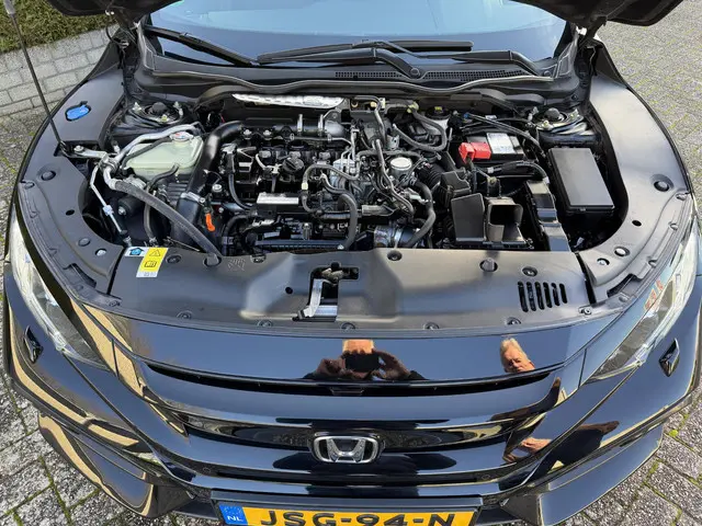 Deze Honda Civic staat voor u klaar. Een geweldige, nog jonge occasion die goed is voor gemakkelijk nog een tonnetje of twee op de teller. Hij heeft een benzinemotor en een automatische transmissie. In de verwarmbare voorstoelen zitten is elke keer een welkom gevoel. Verder is de Honda uitgerust met: 17 inch lichtmetalen velgen, LED-dagrijverlichting, extra getint glas, in delen neerklapbare achterbank, verstelbare lendensteunen en variabele stuurbekrachtiging.Met behulp van de achteruitrijcamera kunt u zo strak inparkeren als u maar wilt! Als u de adaptive cruise control inschakelt, regelt de auto zelf de snelheid en de afstand tot de auto voor u. Een goede veiligheidsvoorziening is de stuurbediening voor belangrijke functies. De auto is natuurlijk voorzien van een full map navigatiesysteem en het audio-installatiesysteem biedt glasheldere geluidskwaliteit dankzij DAB-ontvangst. Bij het wisselen van rijbaan kan een dode hoek ontstaan waardoor achterliggers te dichtbij kunnen komen. De achteropkomend verkeer waarschuwing geeft in dat geval automatisch een signaal. Dankzij electronic climate control is het interieur behaaglijk warm of verfrissend koel. De uitrusting van deze Honda is met sportstuur met schakelpaddels, regensensor, centrale deurvergrendeling met afstandsbediening, bagage afdekhoes en boordcomputer behoorlijk compleet.