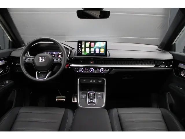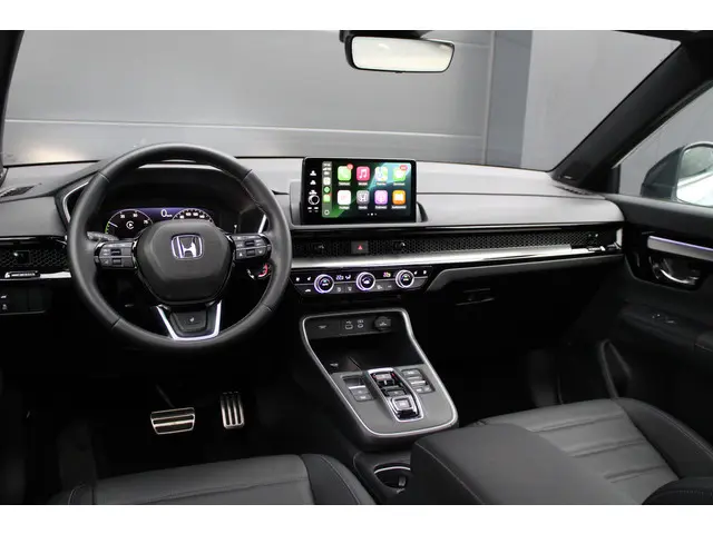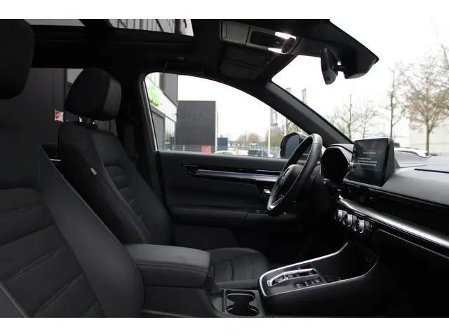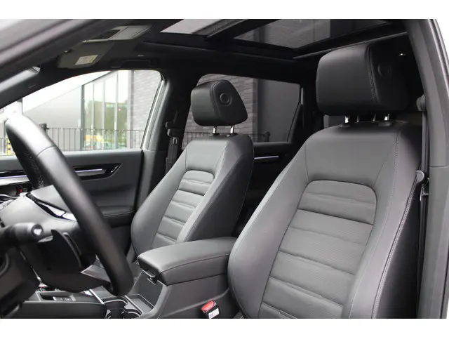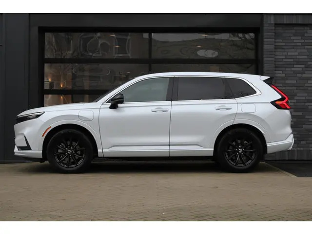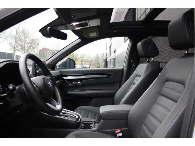 Dit is een auto die is ontworpen voor uw comfort. Deze Honda CR-V is van het bouwjaar 2025. Een fraai voorbeeld van een hybride auto. Zuinig in brandstof door de pittige elektromotor en maximale actieradius dankzij de verbrandingsmotor. Neem plaats op de comfortabele stoelen. Dankzij de elektrische bediening en het geheugen is het eenvoudig om hierin de beste zitpositie te vinden. Met een druk op de knop gaat de elektrische achterklep open. Het glazen panoramadak zorgt voor een onovertroffen uitzicht. De verwarmbare achterbank is een traktatie voor iedereen die achterin plaatsneemt. Tot de uitrusting behoren ook 18 inch lichtmetalen velgen, LED-koplampen, adaptief dempingsysteem, trailer assistent, dakspoiler en donker getint glas achter.De digitale wereld van mobiliteit verwelkomt u; op het digitale dashboard wordt alles weergegeven om uw rit gemakkelijk en veilig te maken. De vier camera's die samen de 360 graden camera vormen, bieden u de mogelijkheid om obstakels in elke richting te zien. Als u de adaptive cruise control inschakelt, regelt de auto zelf de snelheid en de afstand tot de auto voor u. Na een lange werkdag in de file: daar zit niemand op te wachten. Gelukkig helpt de file assistent een handje. Het radarsysteem meet de ruimte tot de voorligger en bewaakt de juiste afstand. Stilstaan? Dan remt en stopt de auto vanzelf. Connected Services zorgen ervoor dat de belangrijkste functies en data van de auto altijd en overal te checken zijn. Gewoon via de app op de smartphone. Wat u ook in deze auto kunt vinden zijn premium audiosysteem, navigatiesysteem, kruisend verkeer detectie, automatische airconditioning, schakelpaddles aan het stuur en draadloos opladen.