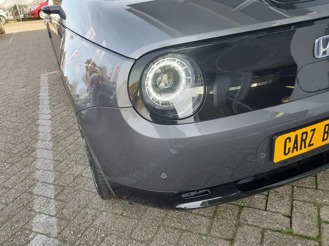 De meest eigenwijze EV in het A-segment van de afgelopen jaren, is misschien wel de Honda e, die duidelijk zijn genen deelt met de aloude Honda Logo en dus een knipoog is naar Honda's verleden. De e is een zeer goed sturende wagen, die tevens zeer vooruitstrevend is op het gebied van luxe. Immers, door een autobreed beeldscherm, digitale buiten- én binnenspiegels en een futuristisch ontwerp, waant u zich bijna in de toekomst. De Honda is van alle gemakken voorzien, heeft een actieradius van 220km en rijdt perfect. Wij leveren deze mooie Honda helemaal rijklaar aan u af!LET OP! Op het rechter voorscherm van de auto ziet u nog een deukje zitten. Deze wordt uiteraard geheel kosteloos nog door ons hersteld, hiervoor staat een afspraak op de planning.
