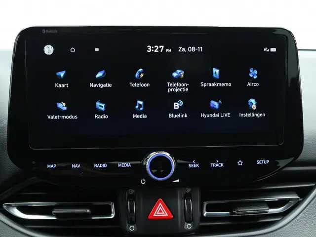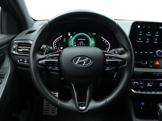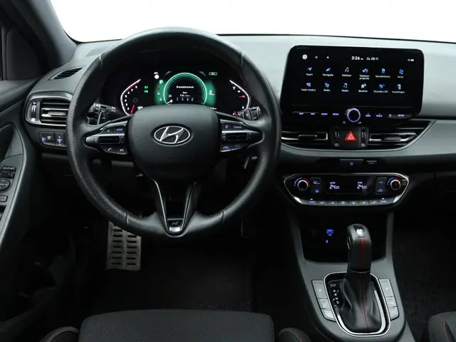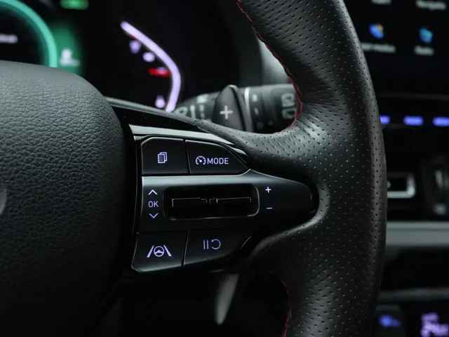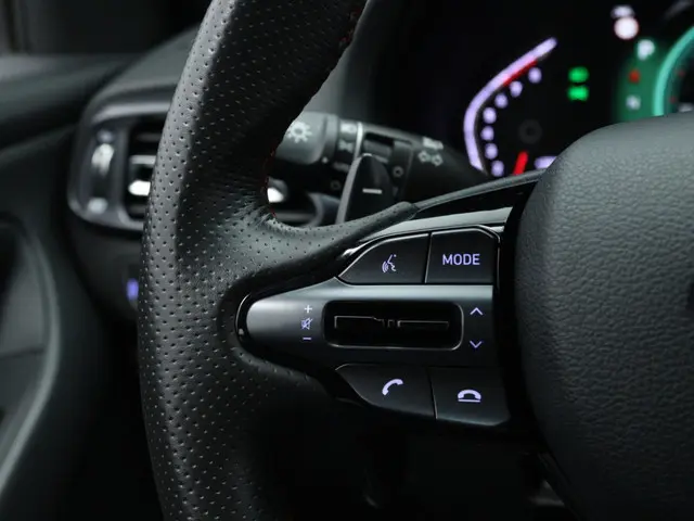 Het stuur van de Hyundai i30 1.5 T-GDi MHEV NLine is multifunctioneel, wat ervoor zorgt dat je alle belangrijke functies binnen handbereik hebt. Zo kun je makkelijk bellen, muziek bedienen en de cruise control instellen zonder je handen van het stuur te hoeven halen.
