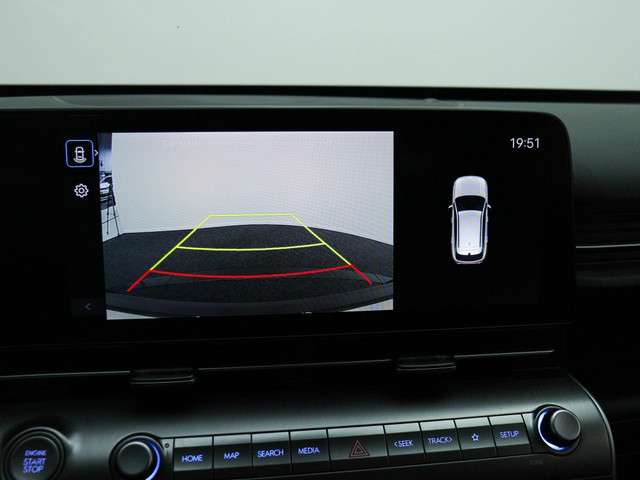 Niet alleen de bestuurder, maar ook de passagiers profiteren van het comfort in de Hyundai Kona 1.6 GDI HEV Comfort. De passagiersstoel is eenvoudig in hoogte verstelbaar, waardoor iedereen zijn ideale zitpositie kan vinden. Bovendien maken de parkeersensoren voor het inparkeren een stuk gemakkelijker en veiliger.