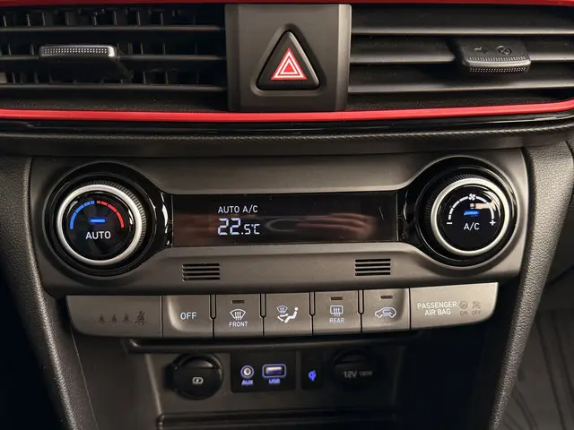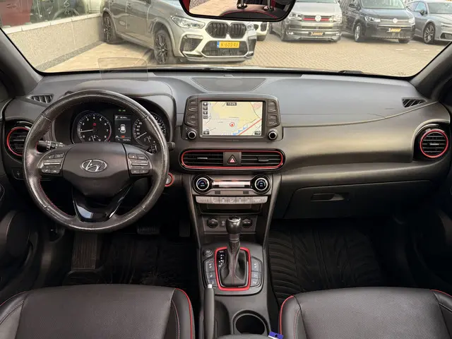 Laat u niets wijsmaken, deze Hyundai Kona biedt alles wat u van een auto verlangt. Een viercilinder benzinemotor en een automatische transmissie verzorgen de aandrijving van deze SUV. Houdt u van een stijlvolle uitvoering? Dan zal het lederen interieur u zeker bevallen. De verwarmbare voorstoelen zijn een heerlijke extra optie, waarmee u uzelf en uw bijrijder een groot plezier doet. De uitmonstering van deze auto wordt gecompleteerd door onder meer 18 inch lichtmetalen velgen, LED koplampen, dakspoiler, donker getint glas achter, in delen neerklapbare achterbank en LED-achterlichten.Parkeer en kijk niet om! De achteruitrijcamera doet dat voor u. Qua muziekbeleving onderweg gaat deze auto ook een stevige stap verder dankzij het high performance audiosysteem. Geen onnodige spaghetti van oplaadsnoertjes voor de smartphone: deze Hyundai Kona heeft een draadloze oplaadmogelijkheid voor telefoons. Tot de standaard uitrusting van deze auto hoort ook automatische airconditioning. Het luxeniveau in deze Hyundai is niet alleen gericht op comfort, maar ook op uw veiligheid. Tal van sensoren helpen u om de omgeving in de gaten te houden. De automatisch inschakelbare verlichting zorgt dat automatisch de verlichting wordt ingeschakeld als het donker wordt, wat bijvoorbeeld in tunnels erg handig is. En de regensensor zet de ruitenwissers aan zonder dat u eraan hoeft te denken. Wat u ook in deze auto kunt vinden zijn full map navigatiesysteem, DAB ontvangst, cruise control, keyless entry, automatisch dimmende binnenspiegel en lederen stuur.