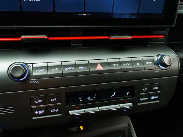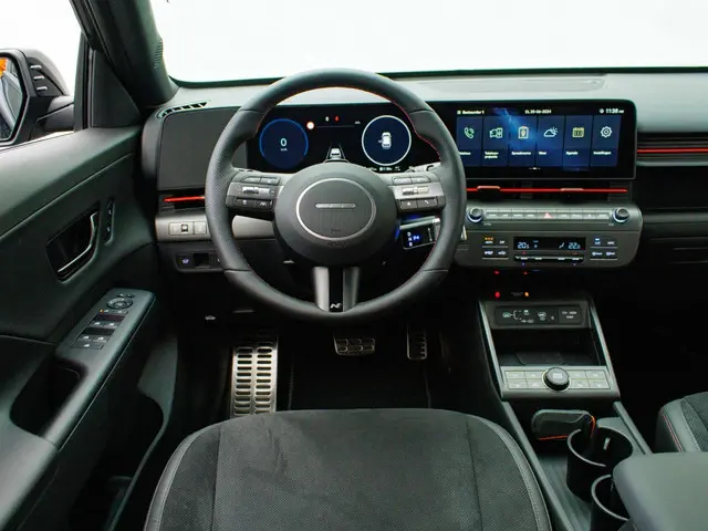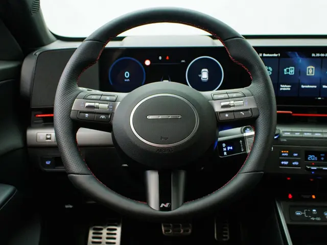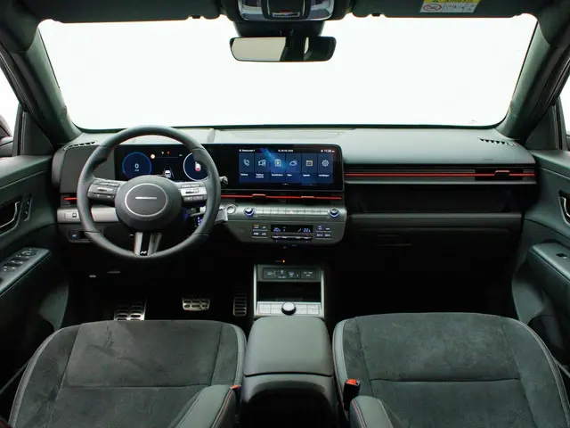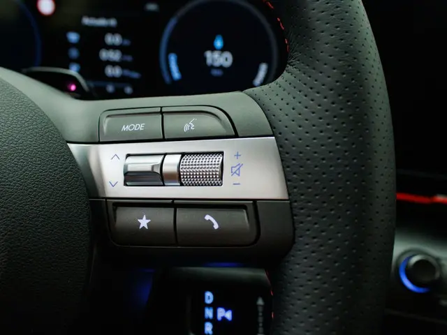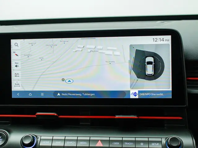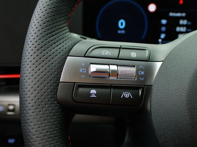 Het interieur van de Hyundai Kona Electric N Line is voorzien van luxe en handige features, waaronder een head-up display en een navigatiesysteem. Met het head-up display heb je alle belangrijke informatie direct in je zichtveld, wat zorgt voor een veilige rit. Het navigatiesysteem helpt je om moeiteloos je weg te vinden, waar je ook naartoe gaat.