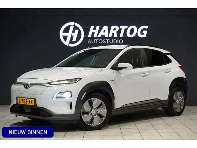 Hyundai Kona EV, 64 kWh accupakket, Luxe Premium uitvoeren met o.a.:Elektrisch verstelbare voorstoelen | Stoelverwarming | Stuurwielverwarming | Dodehoekdetectie | Parkeercamera | Parkeersensoren | Keyless start & entry | Cruise Control adaptief | Climate Control | Krell premium audio | Navigatie | Apple Carplay | Android Auto | Lane-Assist | Privacy glas | Ful led verlichting | Automatische verlichting | Regensensor | VESS | Etc.