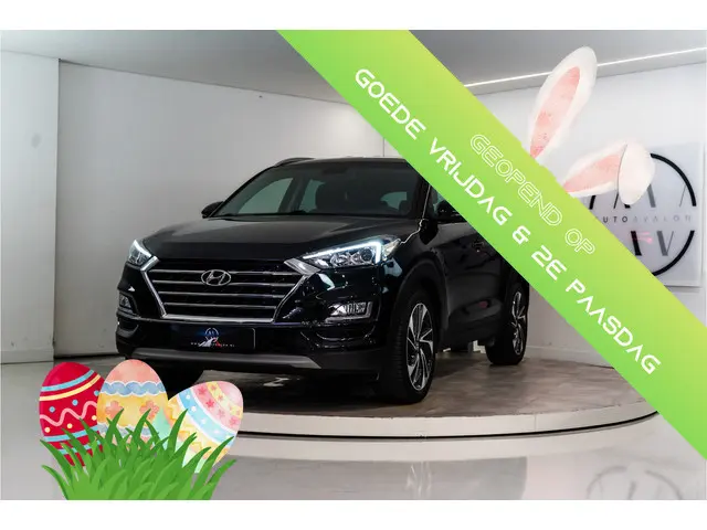 Hyundai Tucson 1.6 T-GDI 177PK DCT – Modeljaar 2019Kleur: Phantom Black Pearl | Bekleding: Zwart (Oceanids Black) | Transmissie: 7-traps DCT automaat | Aandrijving: voorwielaandrijving