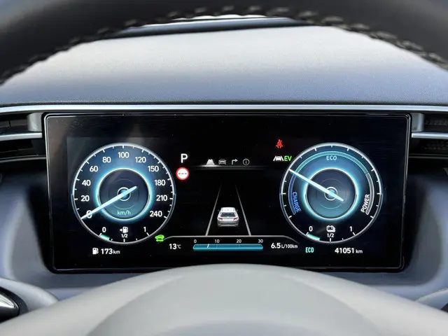 De Koreaanse automerken hebben in ons land een geweldige reputatie. Dit is een Hyundai Tucson uit 2022, met een kilometerstand van 41051. Dit is een van de betere hybride auto's. Ideaal rijden door de combi van elektromotor en verbrandingsmotor! Een koude start op frisse dagen? Niet met de behaaglijke stoelverwarming. Natuurlijk behoren 17 inch lichtmetalen velgen, LED-dagrijverlichting, donker getint glas achter, in delen neerklapbare achterbank en verstelbare lendensteunen ook tot de uitrusting van deze complete auto.Het digitale dashboard vertelt u onderweg alles dat bijdraagt aan een veilige, efficiënte rit. Zelfs een kleine aanrijding kan flinke kosten veroorzaken. Gelukkig laat de achteruitrijcamera precies zien wat er zich achter de auto bevindt en geeft een waarschuwingssignaal. Uw smartphone is tegenwoordig de sleutel tot heel veel. Ook voor deze auto. Remote services, noemen we dat. Waar u ook bent, contact houden is een eitje. Een goede veiligheidsvoorziening is de spraakbediening en stuurbediening voor belangrijke functies. De auto is natuurlijk voorzien van een full map navigatiesysteem en het audio-installatiesysteem biedt glasheldere geluidskwaliteit dankzij DAB-ontvangst. De kruisend verkeer detectie berekent of tegenliggers op uw traject een aanrijdingsgevaar vormen en geeft direct een waarschuwing. Extra opties op deze auto zijn: automatische airconditioning, schakelpaddles aan het stuur, regensensor, cruise control, usb-aansluiting en boordcomputer.