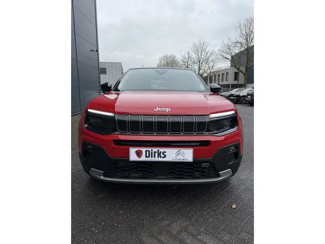 Goede prestaties, aantrekkelijke extra's en perfect onderhouden: deze Jeep Avenger stelt zich graag aan u voor! Deze auto is bijna nieuw, ondanks dat hij uit 2025 komt; hij heeft slechts 3001 kilometer afgelegd. Een driecilinder benzinemotor en een handgeschakelde zesversnellingsbak verzorgen de aandrijving van deze SUV. Om het af te maken is deze auto voorzien van een lederen interieur. Deze Jeep Avenger heeft niet alleen verwarmbare voorstoelen, maar ze zijn ook nog eens voorzien van massagefunctie. Laat de zon maar schijnen door het elektrisch bediende glazen panoramadak. De elektrisch bedienbare achterklep opent met een druk op de knop. Ook 18 inch lichtmetalen velgen, Full LED koplampen, in delen neerklapbare achterbank, LED-achterlichten en verstelbare lendensteunen horen tot de voorzieningen op deze auto.Parkeer en kijk niet om! De achteruitrijcamera doet dat voor u. Met adaptive cruise control houdt deze auto automatisch afstand tot uw voorligger. Een smartphone met internetverbinding legt eenvoudig overal contact met de auto. U kunt functies activeren en de conditie van de auto monitoren. De luidsprekers van het high performance audiosysteem omringen u met een uitgebalanceerd geluid. Elke weg is een bekende weg voor het aanwezige navigatiesysteem. En deze auto heeft ook automatische airconditioning, draadloos opladen, regensensor, keyless entry, automatisch dimmende binnenspiegel en isofix-aansluiting als standaard uitrusting.