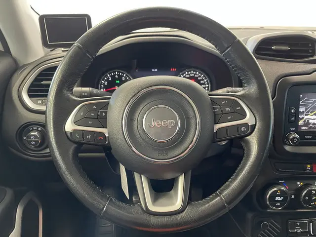 U rijdt gemakkelijk, comfortabel en zonder zorgen met deze Jeep Renegade. Het is een auto van het bouwjaar 2017, hij heeft 96787 kilometer op de teller staan. Met zijn benzinemotor en handgeschakelde zesversnellingsbak is dit een prima auto voor nog vele kilometers. De uitmonstering van deze auto wordt gecompleteerd door onder meer 18 inch lichtmetalen velgen, donker getint glas achter, in delen neerklapbare achterbank en verstelbare lendensteunen.Kinderfietsje niet gezien bij het inparkeren? Dat gebeurt u nooit meer. Daar zorgt de achteruitrijcamera wel voor! Voor een krachtige en natuurlijke geluidsweergave zorgt het high performance audiosysteem. Omdat u nu eenmaal niet overal ogen heeft, is deze Jeep Renegade voorzien van een achteropkomend verkeer waarschuwing die registreert wanneer de afstand tot uw achterligger te krap is. U verwacht natuurlijk automatische airconditioning in deze auto, en die is er dan ook. Er is cruise control aan boord, voor veilige en zuinige kilometers. U bent in deze Jeep ook voorzien van full map navigatiesysteem, keyless entry, lederen stuur en centrale deurvergrendeling met afstandsbediening.