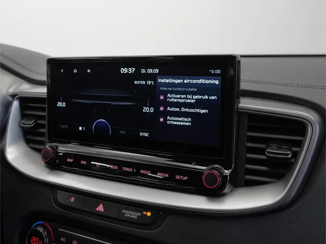 U ziet geen paaltje meer over het hoofd dankzij de achteruitrijcamera. Connected Services voegt nog meer comfort en veiligheid toe aan deze auto. Laat u onderweg niet afleiden, de bediening van het audiosysteem en ook het full map navigatiesysteem gaat met knoppen op het stuur en met spraak. Natuurlijk is de audio-installatie voorzien van DAB-ontvangst. Ook is de auto voorzien van electronic climate control. In deze Kia kunt u zich concentreren op het verkeer, terwijl de auto de omgeving voor u in de gaten houdt. Een automatisch inschakelbare verlichting zorgt dat de verlichting aangaat als het donkerder wordt - in tunnels bijvoorbeeld - en de regensensor schakelt de ruitenwissers in als het nodig is. U hoeft er niets aan te doen. Deze Kia is voorzien van cruise control, automatisch dimmende binnenspiegel, lederen stuur, centrale deurvergrendeling met afstandsbediening en lederen versnellingspook.