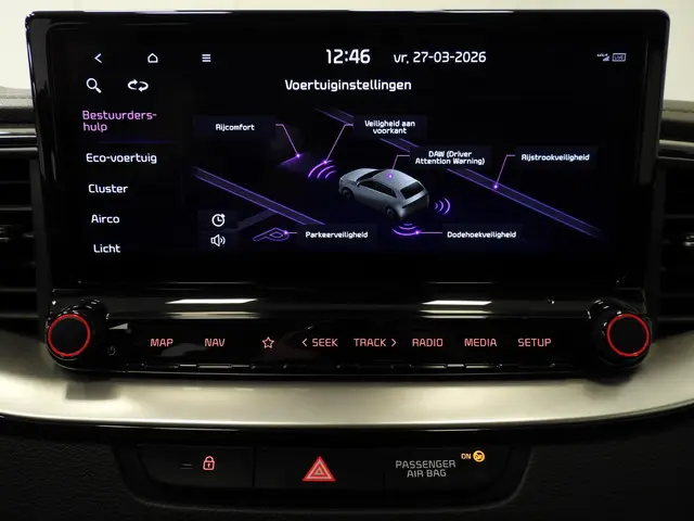 Zoals u mag verwachten van deze Kia Ceed Sportswagon is hij uitgerust met een reeks aan actieve veiligheidssystemen. Het Lane-keeping systeem zorgt dat u mooi binnen de lijntjes blijft. Ongemerkt buiten de rijstrook komen is er niet meer bij. De forward collision warning geeft een botswaarschuwing als een aanrijding dreigt met een voorligger. Deze auto waarschuwt de bestuurder als die tekenen van vermoeidheid vertoont en kan zo ernstige ongelukken voorkomen. De veiligheid van deze auto wordt verder verhoogd door dodehoekdetectie, hill hold functie, autonoom remsysteem en bandenspanningcontrolesysteem.