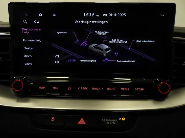 In deze auto zijn verschillende technologieën aanwezig die voor u het verkeer en de omgeving in de gaten houden en die desnoods ook kunnen remmen of bijsturen. Het Lane-keeping systeem let constant op en waarschuwt of corrigeert als u onoplettend over de lijnen van de rijstrook gaat. Mindert een voorligger onverwachts te veel vaart, dan komt de forward collision warning in actie en waarschuwt meteen. Met de vermoeidheidsassistent bent u ook op lange ritten veilig op pad. Het systeem geeft een waarschuwing zodra het tijd is voor een pauze. Dankzij veiligheidsvoorzieningen als dodehoekdetectie, hill hold functie, autonoom remsysteem en bandenspanningcontrolesysteem, bent u steeds veilig onderweg.