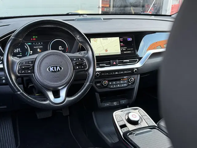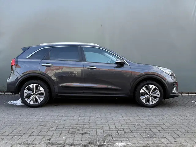 Innovatieve toptechniek en een uitgesproken karakter. De Kia e-Niro is een onderscheidende auto met een elektrische aandrijflijn. U zult verrast zijn door de power van de elektromotor. En stil! Een krachtige motor geeft deze auto zijn sportieve prestaties. Ook een fijne dosis klasse is bijgeleverd, met het lederen interieur. Neem plaats op de comfortabele stoelen. Dankzij de elektrische bediening en het geheugen is het eenvoudig om hierin de beste zitpositie te vinden. Gewoon, omdat het kan. Deze Kia e-Niro heeft zelfs een verwarmde achterbank. Bij de uitrusting van deze Kia horen onder meer 17 inch lichtmetalen velgen, LED koplampen, warmtewerend glas, in delen neerklapbare achterbank, LED-achterlichten en verstelbare lendensteunen.Boem is ho? Dat is verleden tijd. De achteruitrijcamera laat precies zien hoeveel ruimte u achter nog heeft! Met adaptive cruise control houdt de auto zelfstandig afstand tot uw voorligger. Een veiligheidsverhogende optie waarmee u comfortabel onderweg bent. Elk genre muziek komt tot z'n recht. Het high performance audiosysteem is perfect in te regelen op uw smaak! Kaartlezen is verleden tijd, dankzij het aanwezige navigatiesysteem. Ook is de auto voorzien van automatische airconditioning. En dan is deze auto ook nog eens voorzien van schakelpaddles aan het stuur, draadloos opladen, DAB ontvangst, regensensor, keyless entry en automatisch dimmende binnenspiegel.