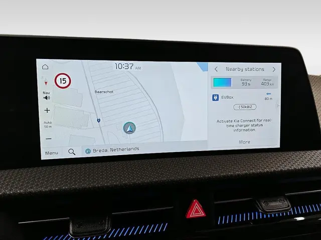 Zoals u mag verwachten van deze Kia EV6 is hij uitgerust met een reeks aan actieve veiligheidssystemen. Onbedoeld buiten de rijstrook raken wordt voorkomen door het Lane-keeping systeem. Botsingen met een voorligger gebeuren relatief vaak. De forward collision warning slaat tijdig alarm als dat risico ontstaat, zodat u kunt ingrijpen.