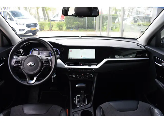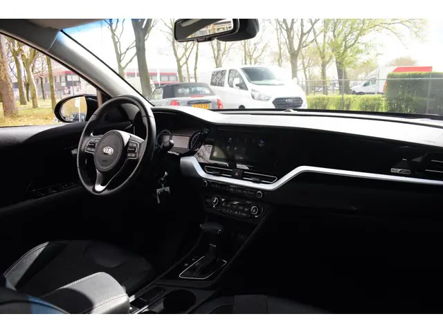 Goede prestaties, aantrekkelijke extra's en perfect onderhouden: deze Kia Niro stelt zich graag aan u voor! Rijden met deze Kia Niro is energiezuinig, want de hybride motor combineert brandstof met elektriciteit. Minder vaak langs de pomp, dus dat scheelt! De uitmonstering van deze auto wordt gecompleteerd door onder meer 16 inch lichtmetalen velgen, halflederen bekleding, LED-dagrijverlichting, in hoogte verstelbare passagiersstoel, in delen neerklapbare achterbank en LED-achterlichten.Hoeveel ruimte heeft u nog bij het inparkeren? De achteruitrijcamera brengt helder in beeld wat zich achter de auto bevindt en geeft een geluidssignaal. Adaptive cruise control houdt de ingestelde snelheid vast en houdt automatisch afstand tot uw voorligger. Laat u onderweg niet afleiden, de bediening van het audiosysteem en ook het full map navigatiesysteem gaat met knoppen op het stuur. Natuurlijk is de audio-installatie voorzien van DAB-ontvangst. Tot de standaard uitrusting van deze auto hoort ook automatische airconditioning. Achter het stuur van deze Kia bent u niet alleen. De auto kijkt als het ware met u mee tijdens de rit. De regensensor schakelt de ruitenwissers in als het nodig is en de automatisch inschakelbare verlichting doet de lichten voor u aan. Natuurlijk behoren sportstuur met schakelpaddels, automatisch dimmende binnenspiegel, centrale deurvergrendeling met afstandsbediening, bagage afdekhoes en lederen versnellingspook ook tot de uitrusting van deze complete auto.