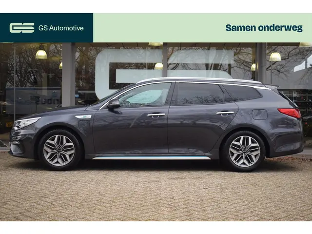 Laat u niets wijsmaken, deze Kia Optima Sportswagon biedt alles wat u van een auto verlangt. Naast de verbrandingsmotor beschikt de auto ook over een elektromotor, die zorgt voor een extra laag brandstofverbruik. Deze Kia Optima Sportswagon legt bestuurder én bijrijder compleet in de watten met de verwarmbare voorstoelen. Daglicht valt vrij binnen door het elektrisch bediende glazen panoramadak. Een handige voorziening op deze auto is de elektrische achterklep die u op afstand kunt openen. Als het buiten koud wordt, voelt zo'n verwarmd stuurwiel heerlijk aan. Bij de uitrusting van deze auto horen onder meer 17 inch lichtmetalen velgen, warmtewerend glas, adaptieve verlichting, in delen neerklapbare achterbank, LED-achterlichten en verstelbare lendensteunen.Niets achter deze auto blijft verborgen door de achteruitrijcamera. Een veilig gevoel! Zo kan muziek in de auto klinken: het high performance audiosysteem levert topklasse geluid! Kaartlezen is verleden tijd, dankzij het aanwezige full map navigatiesysteem. Het spreekt voor zich dat een auto als deze ook van electronic climate control is voorzien. Alle audioknoppen letterlijk onder handbereik: dat kan met de audiobediening op het stuur. Met draadloos opladen, DAB ontvangst, regensensor, cruise control, keyless entry en automatisch dimmende binnenspiegel is deze auto helemaal compleet.