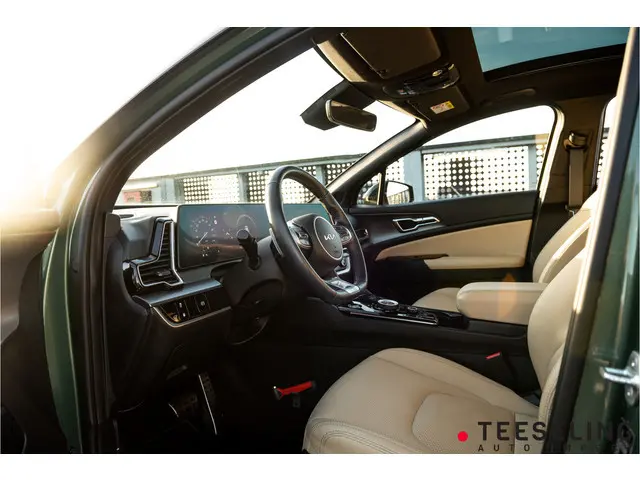 Binnenin wordt de premium beleving voortgezet. Het beige interieur is licht, elegant en luxe afgewerkt, wat zorgt voor een bijzonder hoogwaardige uitstraling. Denk aan comfortabele zetels, zachte materialen, een strakke cockpit en een rustige, uitnodigende ambiance. Deze kleurcombinatie met Jungle Green is vrijwel uniek in Nederland en geeft deze Sportage een uitstraling die je normaal alleen in hogere segmenten ziet.