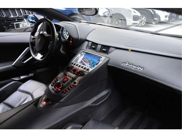 Unieke origineel Nederlands geleverde Lamborghini Aventador met Novitec carbon bodykit en Akrapovic sportuitlaat. Volledig dealeronderhouden met recent uitgevoerde 8-jarenbeurt.. De legendarische vechtstier waar deze Lamborghini naar vernoemd is, leeft voort in zijn spectaculaire voorkomen. De uiterlijke combinatie van zwart, full-body carbon en 21 inch HRE velgen laat niet onopgemerkt aan zich voorbij gaan - over het geluid van de legendarische 6.5 V12-motor met Akrapovic-uitlaatsysteem nog niet eens gesproken. Naast de indrukwekkende 700 PK en razendsnelle prestaties, biedt deze supercar ook topcomfort. Het interieur is volledig bekleed met zwart luxe leder - de elektrisch verstelbare sportstoelen met stoelverwarming maken elke rit tot een genot. Andere aantrekkelijke opties die de Aventador bezit zijn parkeersensoren voor en achter plus achteruitrijcamera en een Sensonium high-performance audiosysteem. Strada, Corsa of Sport: de Aventador is een veelzijdige supercar. Bij hogere snelheden is de grip en downforce maximaal door de vierwielaandrijving en de grote vleugel. De niveauregeling zorgt ervoor dat de voorbumper onbeschadigd blijft bij bijvoorbeeld drempels.Deze sportwagen is exclusiviteit die ervaren moet worden. Hij staat klaar in de showroom voor u.