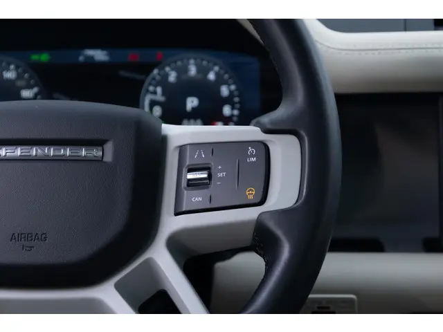Ontspannen en zorgeloos autorijden, dat doe je met deze Land Rover Defender 110. Deze auto komt uit het bouwjaar 2021. Zuinig rijden, minder uitstoot, maximale radius. Door de hybride motor die elektrisch én benzinerijden mogelijk maakt is dit de ideale combi. Voorzien van een lederen interieur: stijl en kwaliteit voor jou en jouw passagiers! Behaaglijk onderweg zijn? Als bestuurder geniet je van de verwarmbare voorstoelen. Net als je bijrijder! Qua licht en ruimtelijk gevoel zit het helemaal goed met het elektrisch bediende panoramadak. Ook in winterse omstandigheden is rijden een plezier, niet in de laatste plaats dankzij het verwarmd stuurwiel. Ook 20 inch lichtmetalen velgen, LED koplampen, adaptief dempingsysteem, trailer assistent, donker getint glas achter en in delen neerklapbare achterbank zijn aan boord.Dankzij het digitale dashboard in deze auto kan je de interface van jouw cockpit personaliseren. Of je nu achteruit rijdt, parkeert of een smalle straat inslaat, de 360 graden camera op deze auto, mogelijk gemaakt door vier camera's, biedt een perfect beeld van je omgeving. Een optie die de veiligheid verhoogt, is de bediening vanaf het stuur van het audiosysteem (met DAB-radio!) en het full map navigatiesysteem. De sensoren van de achteropkomend verkeer waarschuwing registreren wat er gebeurt in de dode hoeken en achter u. U krijgt meteen een waarschuwing als u een achterligger over het hoofd ziet. Met de electronic climate control selecteer jij de gewenste temperatuur. Het systeem doet de rest. De Land Rover is standaard voorzien van: regensensor, cruise control, keyless entry, automatisch dimmende buitenspiegels, centrale deurvergrendeling met afstandsbediening en bagage afdekhoes.
