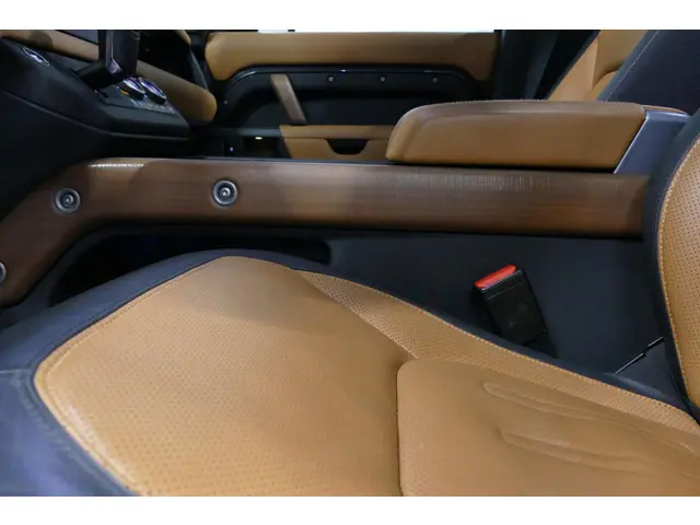 Soepel rijgedrag, een krachtige acceleratie en een laag brandstofverbruik, de hybride Land Rover Defender 110 is een innovatieve auto. De pluspunten van rijden op benzine en rijden op elektriciteit zijn soms lastig te vergelijken. Dus komt de hybride motor van deze Land Rover Defender 110 mooi uit. De perfecte combi! De leren bekleding is niet alleen mooi om te zien, maar zorgt ook voor comfort en een rijke uitstraling. Dankzij de elektrische stoelbediening is het gemakkelijk om de optimale zitpositie te vinden. Dat noemen ze nou een ruimtelijk effect: het elektrisch bediende glazen panoramadak. Een praktische extra is de elektrisch bedienbare achterklep die opent en sluit met een druk op de knop. Koude handen? Da's voorbij met het verwarmd stuurwiel. Pak aan! De koplampen geven het beste zicht ooit, met de matrix LED-verlichting. Tot de uitrusting van deze Land Rover behoren ook 20 inch lichtmetalen velgen, adaptief dempingsysteem, trailer assistent, donker getint glas achter, in delen neerklapbare achterbank en LED-achterlichten.
