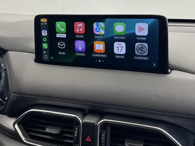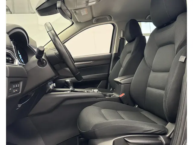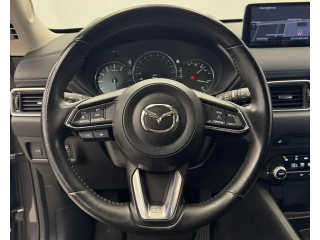 De nieuwste veiligheidssystemen komen in deze Mazda CX-5 samen. Blik op de weg houden? U hoeft uw hoofd niet meer te draaien om het dashboard te zien, dankzij de head-up display. De camera van de verkeersborddetectie herkent verschillende soorten verkeersborden en toont deze op het dashboard. Deze Mazda CX-5 is ook behulpzaam als het gaat om een rechte koers. Het Lane-keeping systeem signaleert en corrigeert als u onbedoeld de rijstrooklijnen dreigt te overschrijden. Bovenop deze veiligheidsfeatures heeft deze Mazda bovendien dodehoekdetectie, forward collision warning system, hill hold functie, brake assist, vermoeidheidsherkenning en bandenspanningcontrolesysteem.