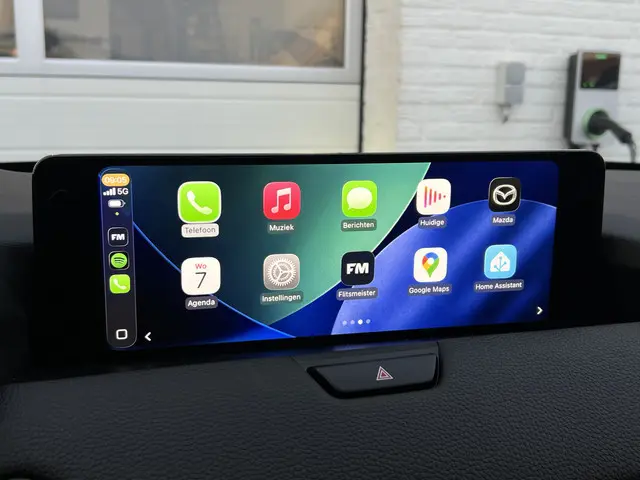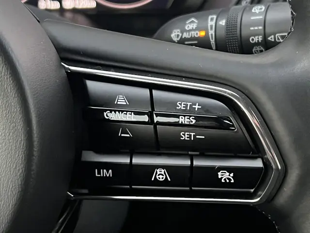 Tijdens de rit wordt u als bestuurder ondersteund door verschillende systemen die de weg en uw omgeving in de gaten houden. Uiteenlopende functies maakt de head-up display zichtbaar in de voorruit. Dat de auto steeds meer taken van de bestuurder overneemt, merkt u bijvoorbeeld aan het systeem voor verkeersbord-detectie in deze Mazda. Het Lane-keeping systeem zorgt dat u mooi binnen de lijntjes blijft. Ongemerkt buiten de rijstrook komen is er niet meer bij. Verder is deze auto uitgerust met dodehoekdetector detectiesysteem, forward collision warning system, hill hold functie, brake assist, vermoeidheidsherkenning en bandenspanningcontrolesysteem.