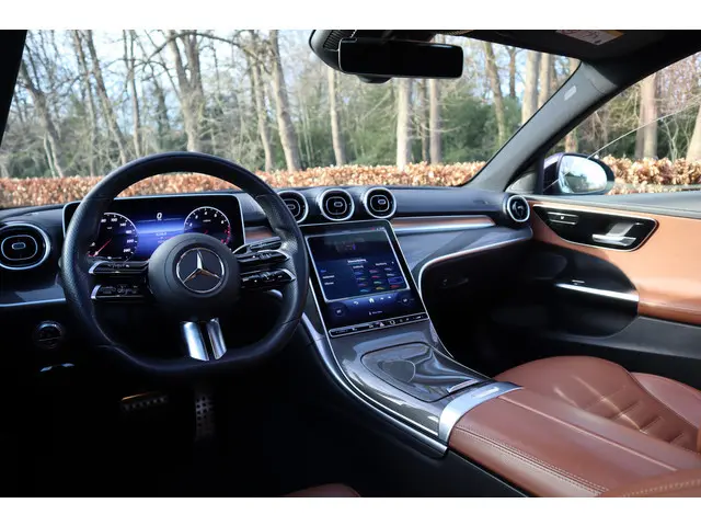 U ziet het al aan de buitenkant en u voelt het zodra u de krachtige motor start, deze sportieve Mercedes-Benz C-klasse is gemaakt om prestaties te leveren. We hebben het hier over een dealer onderhouden auto uit 2021, hij heeft 72.778 kilometer gelopen. Met de AMG Line Exterieur mag deze auto zeker gezien worden. Het interieur ademt luxe door de leren bekleding. Bestuurder en bijrijder krijgen een warm welkom: deze Mercedes-Benz C-klasse is voorzien van verwarmbare voorstoelen. Fijn zo'n elektrisch bediend glazen panoramadak. Een handige voorziening op deze auto is de elektrische achterklep die u op afstand kunt openen. Bij de rijke uitrusting horen ook LED koplampen, AMG Line Exterieur, sportonderstel, warmtewerend glas, in delen neerklapbare achterbank en verstelbare lendensteunen.Ervaar de wonderen van de digitale mobiliteitswereld waarbij alles wat u wenst op het digitale dashboard verschijnt. Bij het inparkeren hoeft u het laatste stukje niet te gokken: de achteruitrijcamera kijkt voor u uit. De ingebouwde Connected Services vertellen u via de app alles over de status van de auto. Locatie, onderhoudsstatus, brandstofpeil en nog veel meer! Voor de veiligheid op de weg is het goed dat u uw ogen op de weg kunt houden en uw handen aan het stuur. Want het audiosysteem, met DAB-ontvangst, en het full map navigatiesysteem bedient u vanaf het stuurwiel en met spraakbediening. De draadloze oplaadmogelijkheid voor telefoons voldoet aan de universele Qi-standaard. Elke geschikte smartphone is onderweg zonder snoeren en stekkers op te laden. Deze Mercedes-Benz is voorzien van automatische airconditioning, regensensor, cruise control, sportstuurwiel, automatisch dimmende buitenspiegels en centrale deurvergrendeling met afstandsbediening.