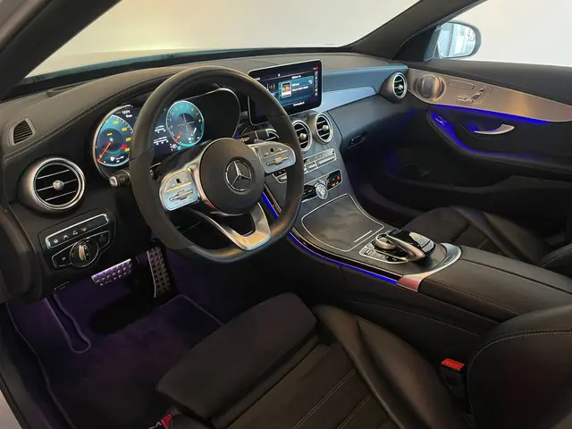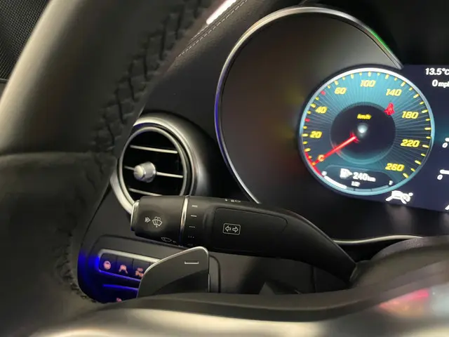 Duitse ingenieurskunst staat synoniem voor kwaliteit en betrouwbaarheid, iets wat u direct zult herkennen wanneer u deze Mercedes-Benz C-klasse start. Het elegante exterieurdesign krijgt een sportieve impuls met het AMG-styling pakket. Een krachtige motor geeft deze auto zijn sportieve prestaties. Dankzij de elektrische stoelbediening is het gemakkelijk om de optimale zitpositie te vinden. Dankzij het elektrisch bediende glazen panoramadak lijkt het of u altijd met open dak rijdt. De koplampen met matrix LED-verlichting geven daglichtkwaliteit zonder tegenliggers te hinderen. Bij de uitrusting van deze Mercedes-Benz horen onder meer AMG-styling, sportonderstel, warmtewerend glas, zwarte hemelbekleding, in delen neerklapbare achterbank en LED-achterlichten.Snelheid, omgevingsinfo, navigatie en communicatie... Het digitale dashboard geeft alles realtime weer. Met de 360 graden camera kunt u elk obstakel of gevaar rondom de auto detecteren, wat uw veiligheid verhoogt. Met adaptive cruise control houdt deze auto automatisch afstand tot uw voorligger. Spraaksturing betekent dat u verschillende functies met uw stem kunt bedienen. Vergeten af te sluiten? Bandenspanning onvoldoende? De speciale app geeft u direct een seintje met behulp van Connected Services. U bent in deze Mercedes-Benz ook voorzien van full map navigatiesysteem, achteropkomend verkeer waarschuwing, kruisend verkeer detectie, automatische airconditioning, draadloos opladen en DAB ontvangst.