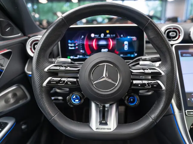 Rij- en route-info wordt perfect in beeld gebracht door het digitale dashboard. Kom maar, kom maar, kom maar... ho! Prettig hoor, zo'n achteruitrijcamera. Adaptive cruise control houdt de ingestelde snelheid vast en houdt afstand tot het voertuig voor u. Handig en veilig: Connected Services. Alle vitale functies en data van de auto checkt u via de app op uw smartphone. In deze C-klasse vindt u niet alleen schakelaars op het stuur om het navigatiesysteem met harde schijf te bedienen en het audio-installatiesysteem met DAB-ontvangst, maar er is ook spraakbediening. En dan is deze auto ook nog eens voorzien van automatische airconditioning, draadloos opladen, regensensor, sportstuurwiel, automatisch dimmende buitenspiegels en centrale deurvergrendeling met afstandsbediening.