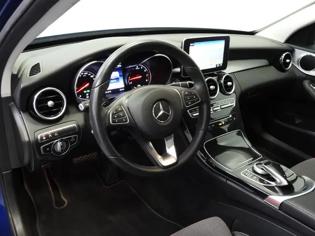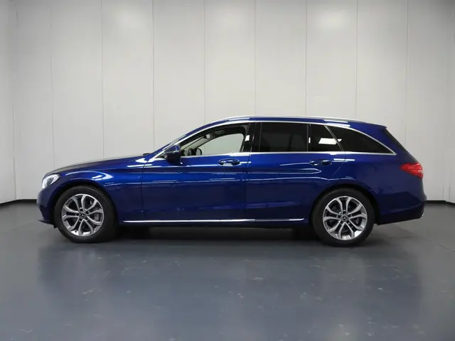 Vorm, constructie, prestaties en techniek… Duitse auto′s behoren tot de beste van de wereld, en dat is niet voor niks. De aandrijving van deze Mercedes-Benz wordt verzorgd door een viercilinder benzinemotor en een automatische transmissie. U wilt comfort? Die is er, met het lederen interieur. U wilt gemak? Kijk dan even naar de elektrisch bedienbare achterklep. Zit u goed? De stoelen zijn eenvoudig instelbaar dankzij de elektrische bediening met geheugen. Deze Mercedes-Benz C-klasse Estate heeft als extra een uitstekende luchtvering. Een groot plezier voor inzittenden en bagage. Natuurlijk behoren 17 inch lichtmetalen velgen, aluminium dakrailing, warmtewerend glas, LED-achterlichten, metallic lak, elektrisch bedienbare ramen achter, elektrisch inklapbare buitenspiegels, LED-dagrijverlichting en in delen neerklapbare achterbank ook tot de uitrusting van deze complete auto.Spraaksturing luistert naar uw stem en bedient de belangrijkste voertuigfuncties. Wegwijs in elke wijk, stad of reisbestemming? Daarvoor zorgt het navigatiesysteem met harde schijf! Ook is de auto voorzien van climate control. De auto neemt u werk uit handen doordat hij zelf veel in de gaten houdt. Een regensensor en een automatisch inschakelbare verlichting nemen waar wanneer de ruitenwissers en het licht aan moeten en de adaptive cruise control zorgt automatisch voor de juiste afstand tot uw voorligger. Deze Mercedes-Benz C-klasse Estate denkt vooruit als u van plan bent af te slaan. De kruisend verkeer detectie calculeert en analyseert het tegemoetkomende verkeer en waarschuwt als het risico op aanrijding bestaat. Natuurlijk behoren sportstuur met schakelpaddels, dvd-systeem, automatisch dimmende buitenspiegels, isofix-aansluiting, centrale deurvergrendeling met afstandsbediening en bagage afdekhoes ook tot de uitrusting van deze complete auto.
