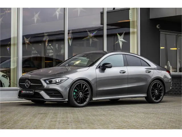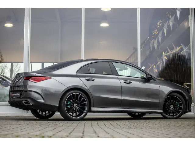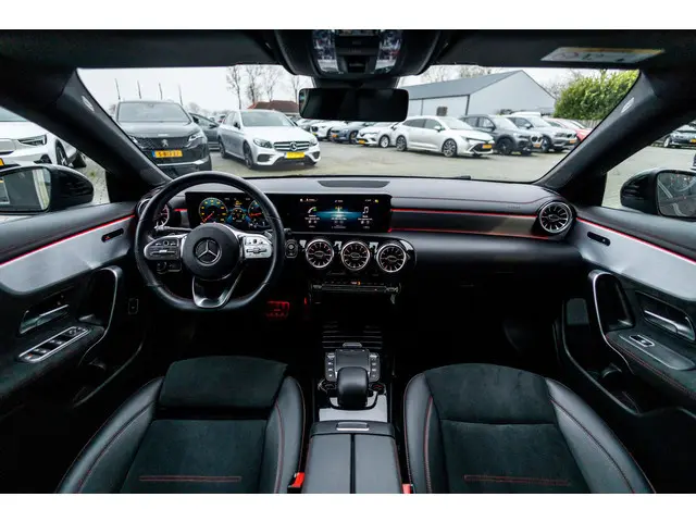 Zijn dynamische uiterlijk maakt al direct duidelijk wat voor rijervaring u van deze Mercedes-Benz CLA-klasse mag verwachten: pure sportiviteit. En heel aantrekkelijk is de stoere, sportieve AMG-styling. Hij heeft een benzinemotor en een automatische transmissie. Ga samen met uw bijrijder lekker zitten in de verwarmbare voorstoelen. Mooi om te zien en heerlijk om in te zitten zijn de sportstoelen, die u onderweg optimale ondersteuning geven. Het panoramadak zorgt voor maximale lichtinval en kan worden geopend voor extra ventilatie. Ook 19 inch lichtmetalen velgen, winterbanden set, Full LED koplampen, AMG-styling, zwarte hemelbekleding en donker getint glas achter horen tot de voorzieningen op deze auto.Het digitale dashboard geeft alle up-to-date info en functies voor een slimme en veilige rit. Niets achter deze auto blijft verborgen door de achteruitrijcamera. Een veilig gevoel! Ingebouwde spraakbediening maakt het mogelijk om de auto te bedienen zonder dat uw aandacht wordt afgeleid. Had u de auto nou wel afgesloten? Met Connected Services checkt u het overal en altijd. Deze auto kent elke bestemming als z'n broekzak, dankzij het navigatiesysteem met harde schijf. Ook is de Mercedes-Benz uitgerust met: WIFI-hotspot, automatische airconditioning, schakel flippers aan het stuur, DAB ontvangst, regensensor en cruise control.