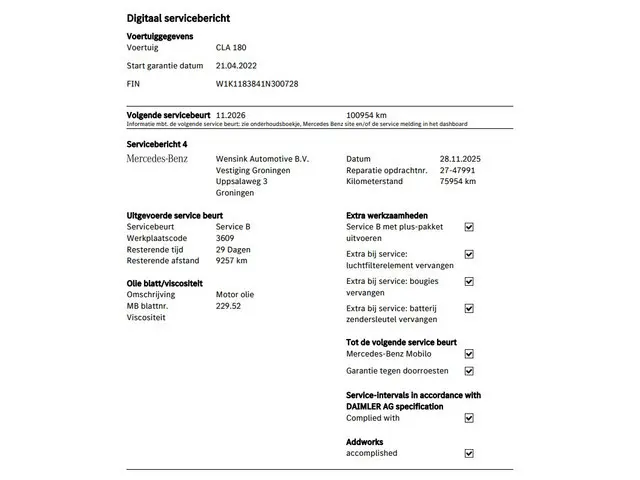 Voertuiggegevens van deze Mercedes-Benz CLA-Klasse