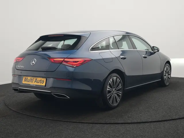 Mercedes-Benz CLA-klasse Shooting Brake 250 e Progressive Plug In Hybrid 218pk Dealer O.H. PHEV | Adaptive Cruise | 360 Camera | Lederen Sportstoelen Massage & Memory | Widescreen Navi | Sfeerverlichting | Stoelen & Stuur Verwarmd | Apple Carplay | Navigatie | DAB |Ga je voor topklasse, dan is Mercedes de voor de hand liggende keus. 'The best or nothing', is het motto. Elektrisch rijden of benzine? Deze hybride Mercedes-Benz CLA-klasse Shooting Brake combineert de pluspunten van allebei naar keuze. Tijdens gure dagen is het prettig zitten in de verwarmbare voorstoelen. Neem plaats achter het stuur en ervaar de weldaad van de comfortstoelen. Tot de uitrusting behoren ook 18 inch lichtmetalen velgen, LED koplampen, in delen neerklapbare achterbank, LED-achterlichten, verstelbare lendensteunen en snelheidsafhankelijke stuurbekrachtiging.