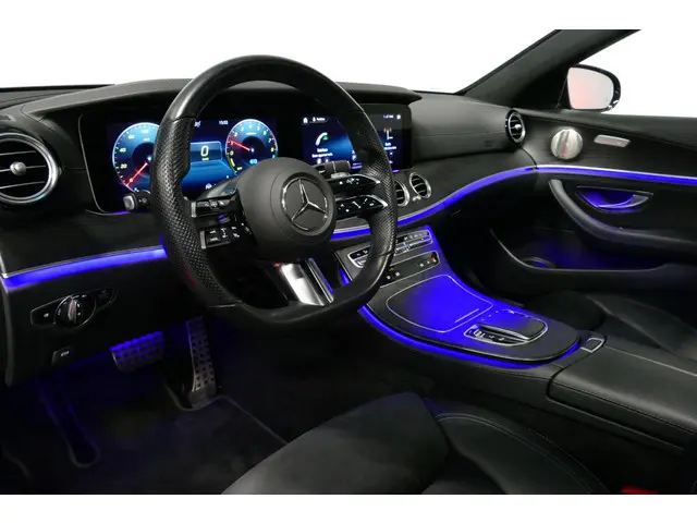 Mercedes-Benz E-Klasse 300 e AMG Line / E63 AMG Diffuser / Panamericana Grill / Panoramadak / Burmester Surround Sound / Rondomzichtcamera / Deels elektr. verstelbare voorstoelen / Ambienteverlichting / Stoelverwarming / Apple Carplay - Android Auto / 20'' LMV / Trekhaak (zwenk...