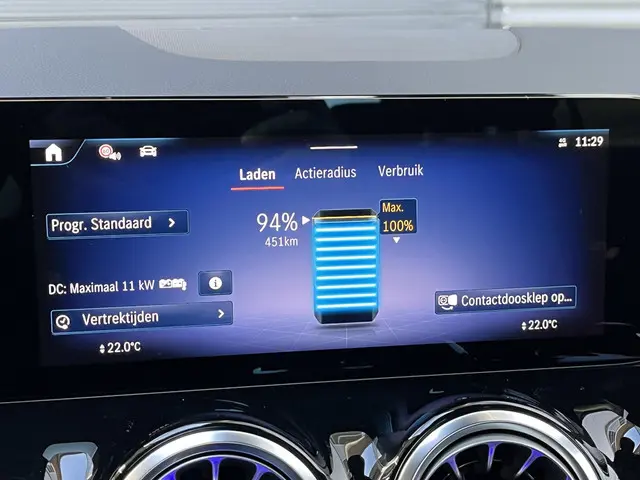 Accu laden: 11 kW, compleet vol in 7 uur en 15 minuten