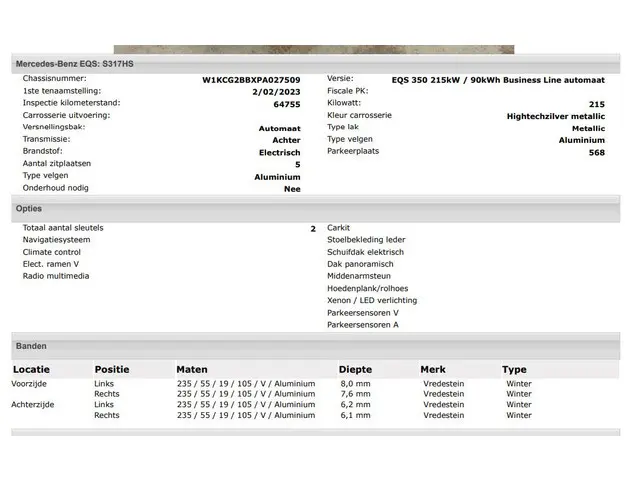 Voertuiggegevens van deze Mercedes-Benz EQS