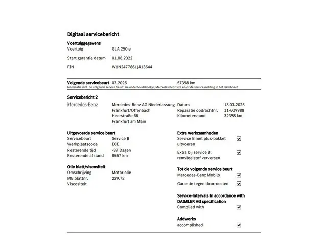 Voertuiggegevens van deze Mercedes-Benz GLA