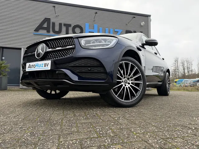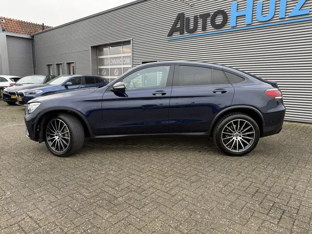 Nieuw binnen bij AutoHuiz BV Winschoten, een dealeronderhouden en zeer goed uitgeruste Mercedes-Benz GLC-klasse Coupé 300e 4MATIC AMG-Line in de kleur Cavansite Blue Metallic.AutoHuiz BV zal deze auto leveren inclusief garantie, een volle tank brandstof, volle accu en minimaal 12 maanden APK.