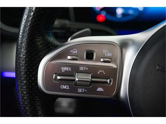 Sportieve accenten dankzij het AMG-stylingpakket, inclusief frontspoiler, dorpelverbreders, dubbelspaaks 22” AMG-velgen en AMG-vloermatten. Binnenin straalt het interieur luxe uit met leder/nappaleder bekleding in zwart/antraciet en een sportstuur in diep reliëf.